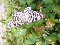 人馴れしているちょうちょ。娘は入ったとたんにもう興奮状態。だって大好きなちょうちょがひらひらと娘の周りを飛び周り、時々頭や服にとまったりするもんですから・・・なんだかここのちょうちょは人馴れしている様子です。とにかくきれいな蝶たちをご覧下さい。